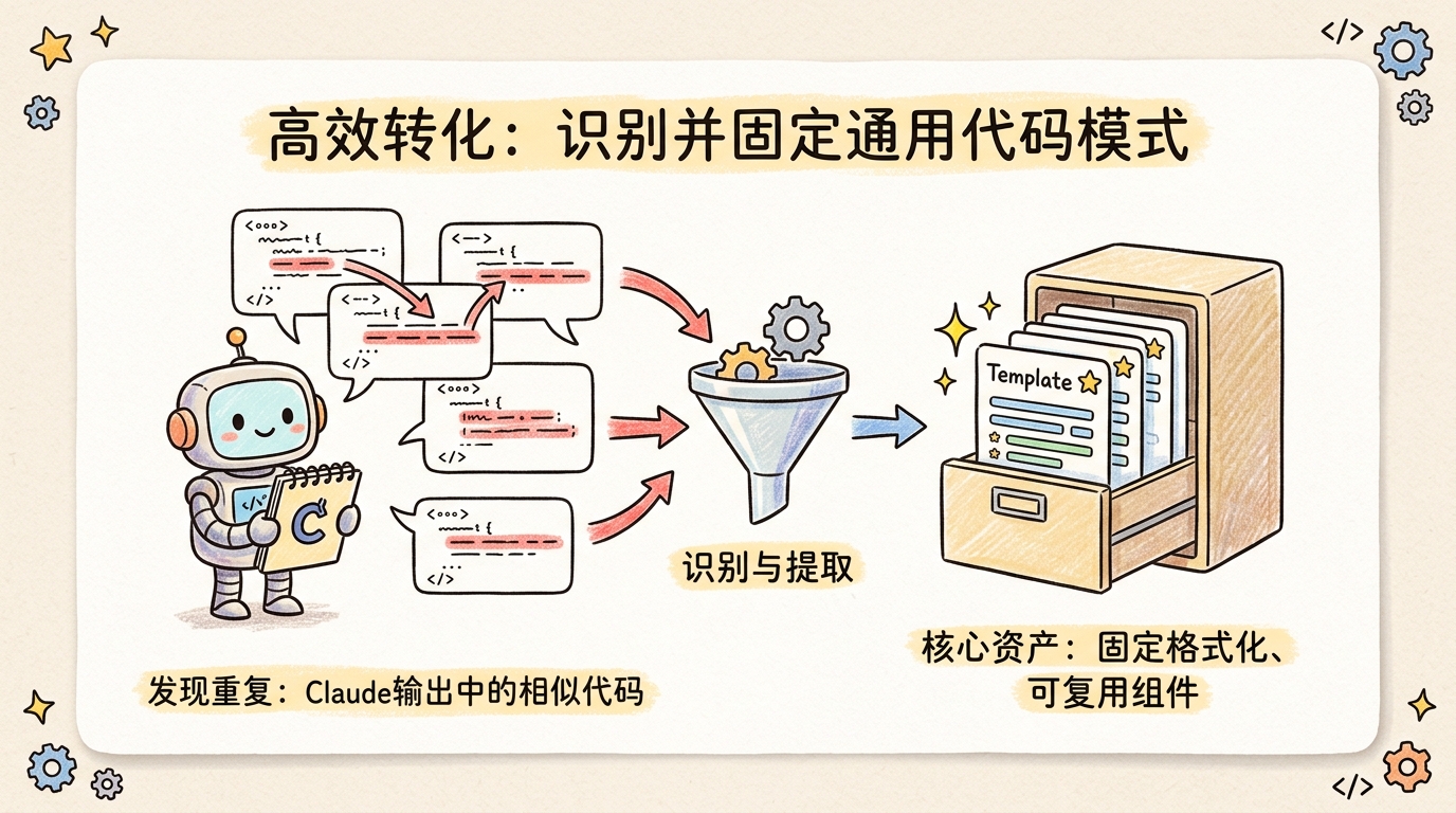 一旦某类结果已经重复出现,就不要再把它当一次性输出,而要开始判断:它适合变成模板、skill、脚本,还是固定工作流。