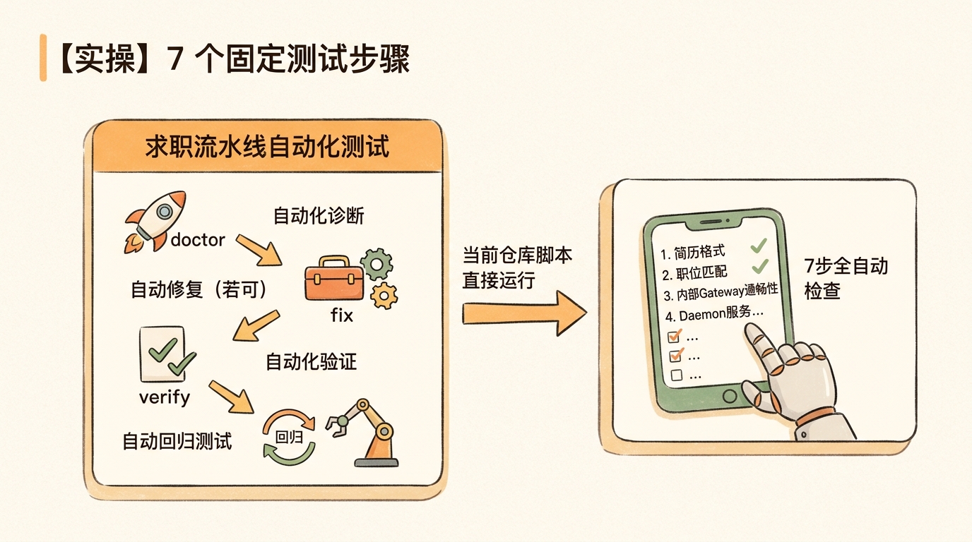 如果你也在做 Claude Code / OpenClaw 方向的求职自动化,不妨先照这 7 步跑一轮。你会很快发现,真正让系统“耐用”的,不是多一个花哨功能,而是每次更新后你都能确定:这条流水线仍然可信。