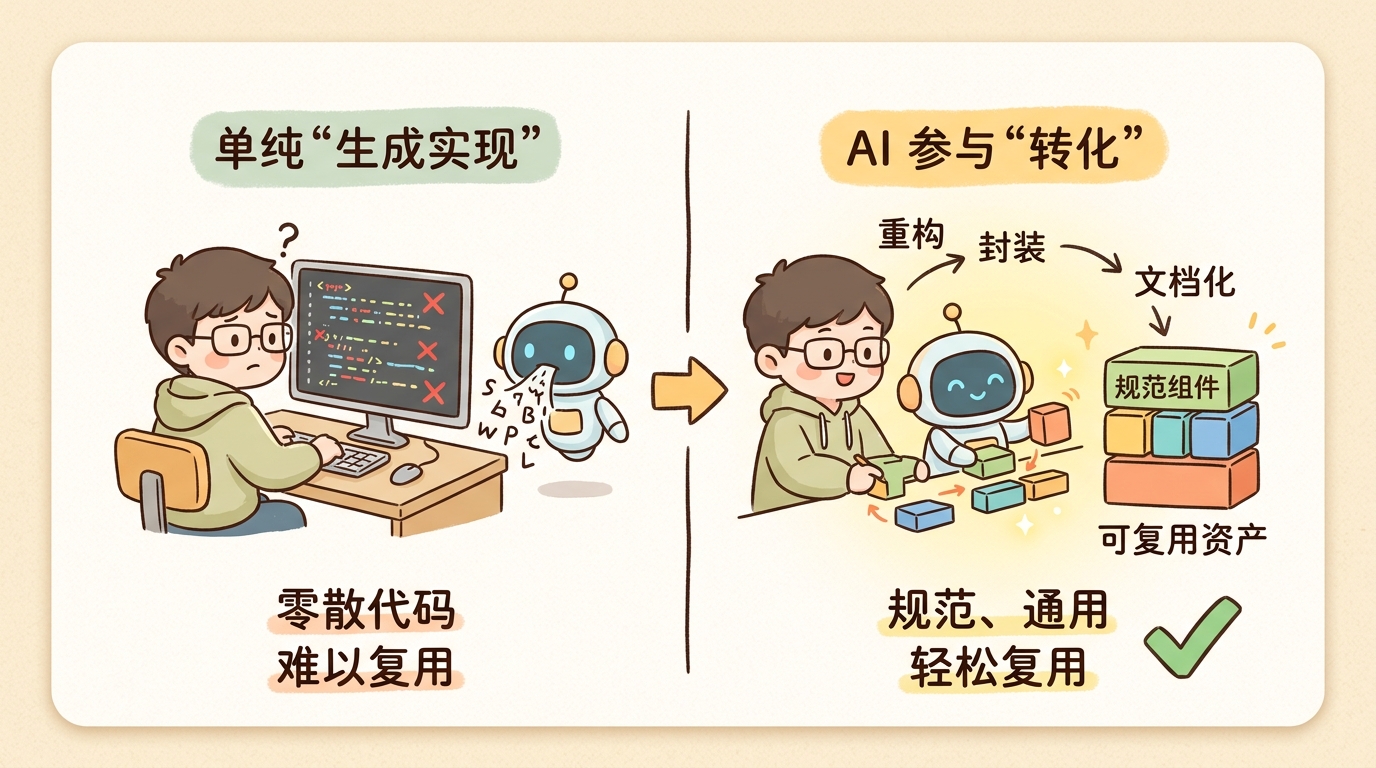 如果它只负责生成,你得到的是“今天更快”;如果它开始参与归类、封装、抽象和结构化,你得到的才是“明天也更快”。